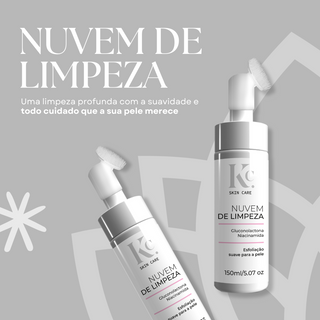 A Nuvem de Limpeza da KC Skincare oferece uma experiência revolucionária e luxuosa para a rotina diária de cuidados com a pele. Este produto inovador transcende os métodos convencionais de limpeza facial, proporcionando uma sensação única e eficaz.